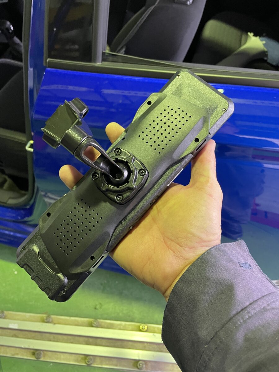 説明書通りの取付だとこの様に純正ミラーにバンドで取付出来るようになっていますがオーナー様のこだわりで純正風に取付を依頼