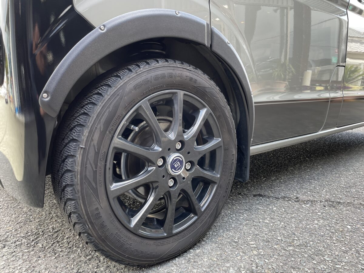 オーバーフェンダーはREIZの車検対応タイプ こちらの部品で約2cm低く見えます。