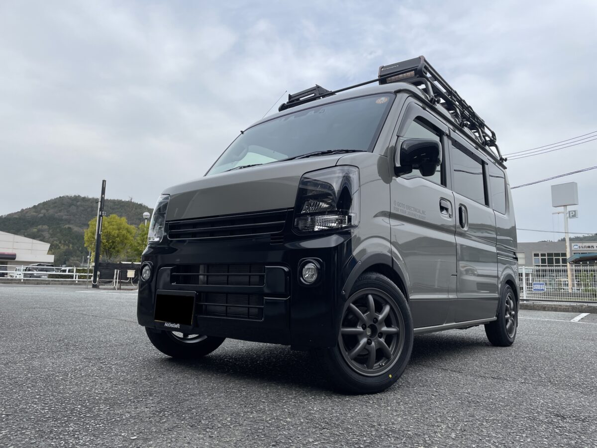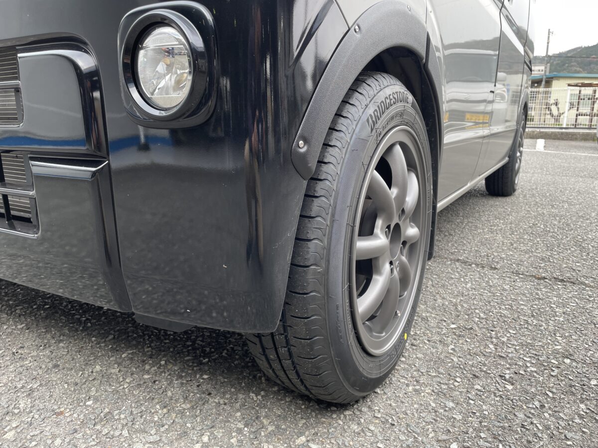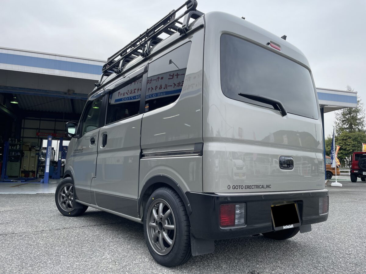以前車両購入からカスタムまでしていただいた「スズキ・エブリー」にホイールを取付させて頂きました。